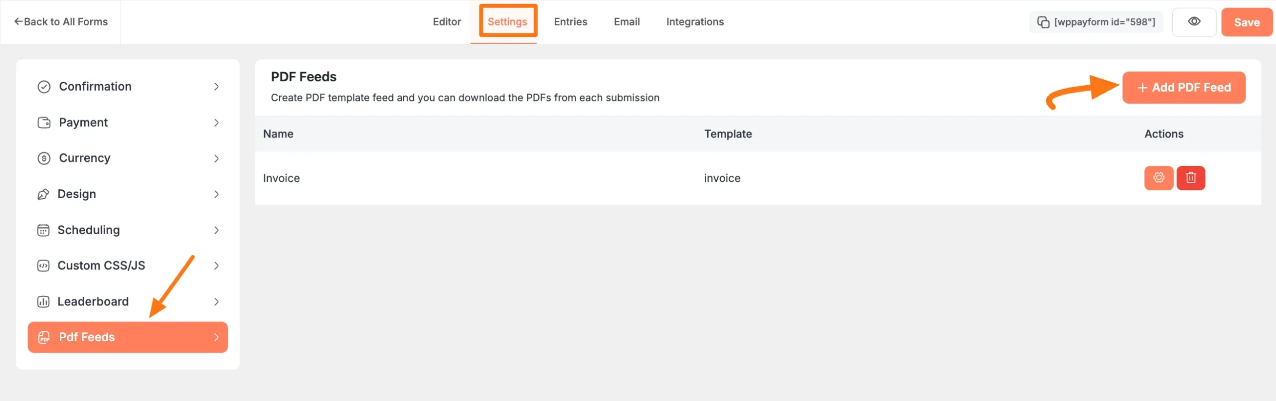 Click the Save Feed button when the change is done and the PDF Feed will be added to your form.