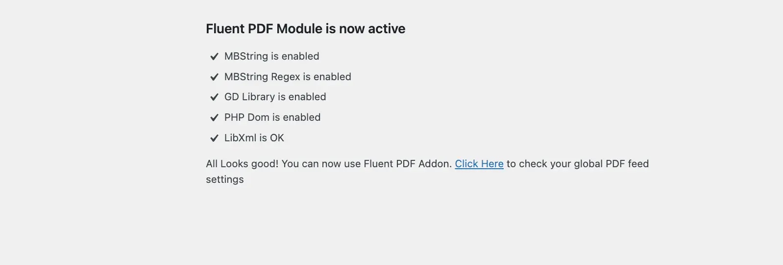 Your Fluent PDF Module is active so you can use the PDF Feed of Paymattic now.