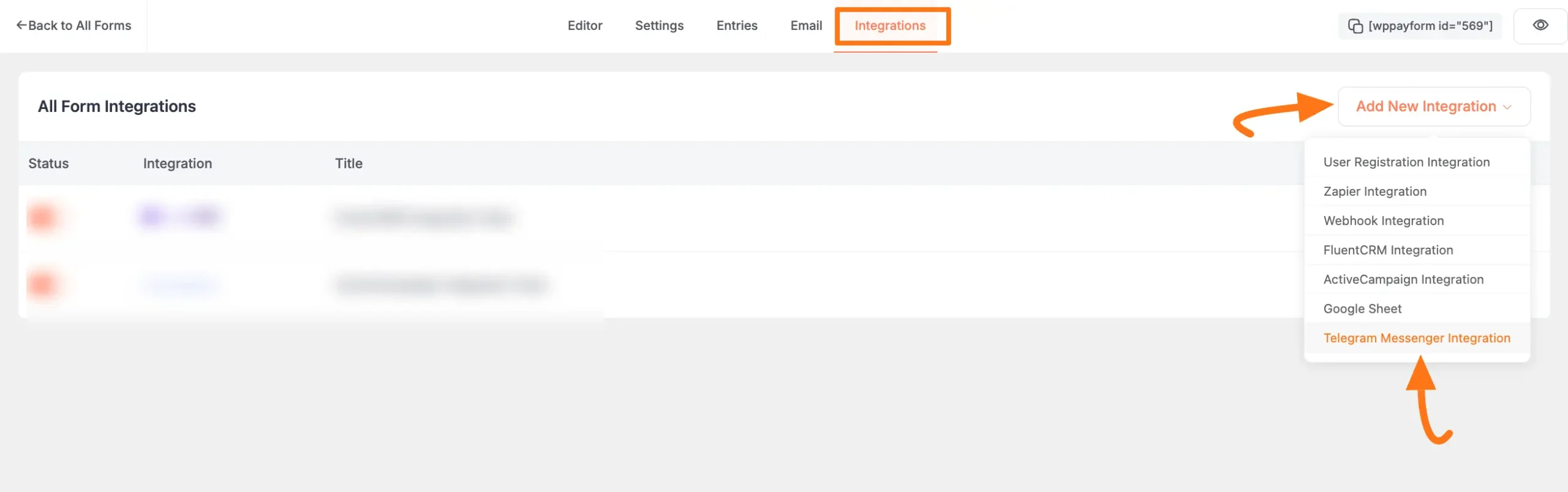 Now, return to the Telegram Messenger Settings page under the Integrations section from the Paymattic Navbar.