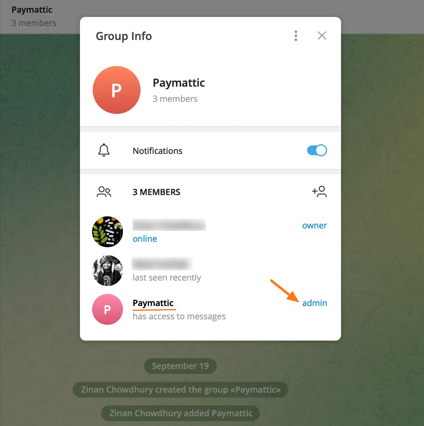 Now, add the Bot that you created through the @BotFather in the previous step as a member of the group and then give your bot Admin Access i.e., simply make the bot admin of your group chat.