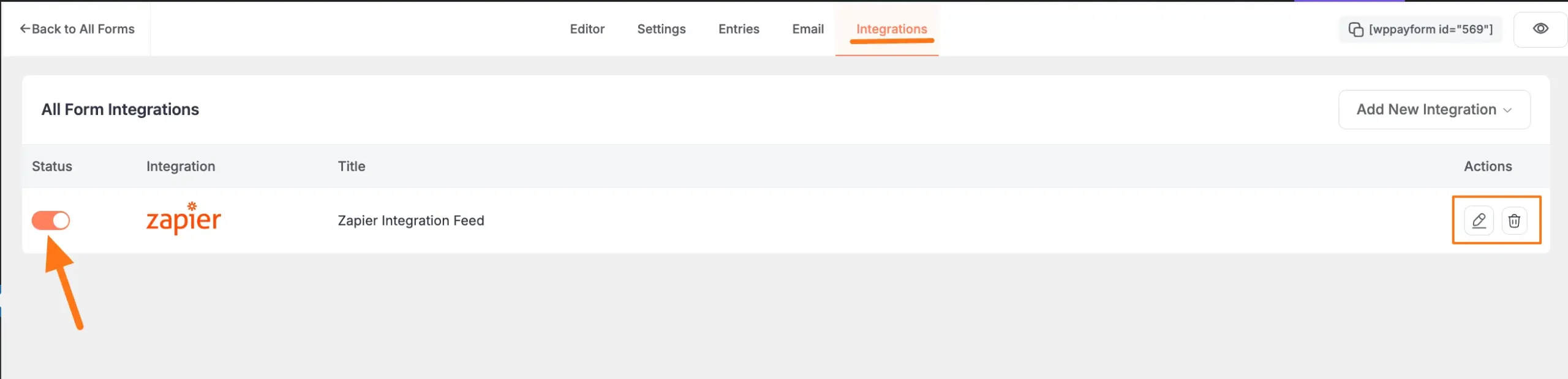 First, go to All Forms from the Paymattic Navbar, select the Desired Form where you want to integrate Zapier, and click the Pencil/Editor Icon.