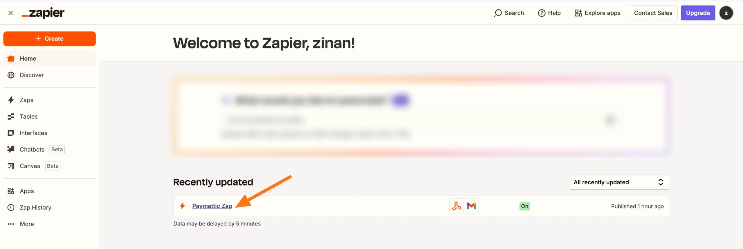 First, log in to your Zapier Dashboard and click on the Zap that you have created.