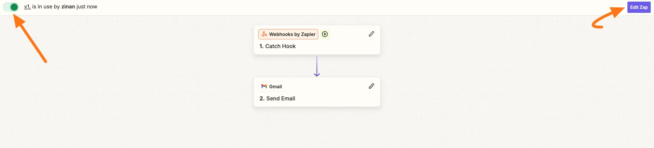You can turn it on/off anytime by clicking the Toggle button. Also, you can edit the Zap anytime by clicking the Edit Zap button.